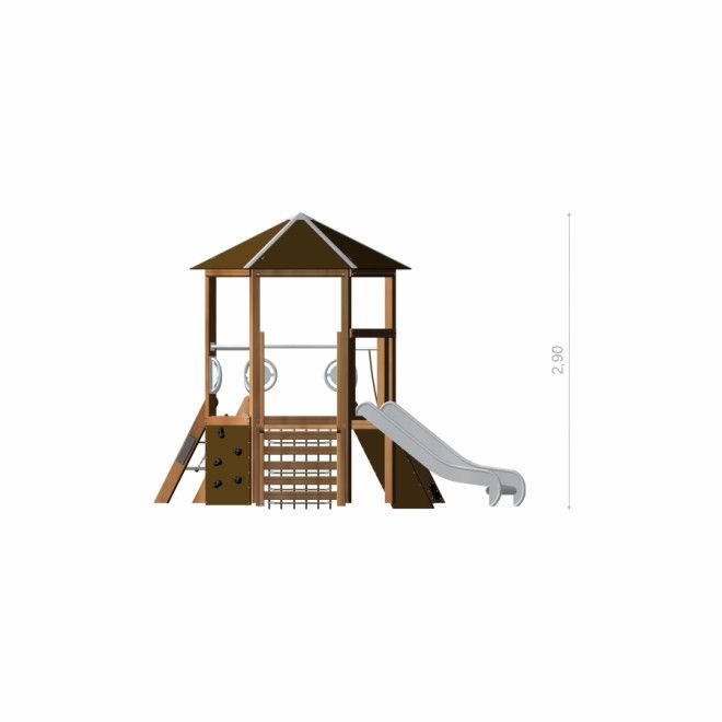 Six Angle w/ stairs & slide wooden playhouse Uvala - Front view