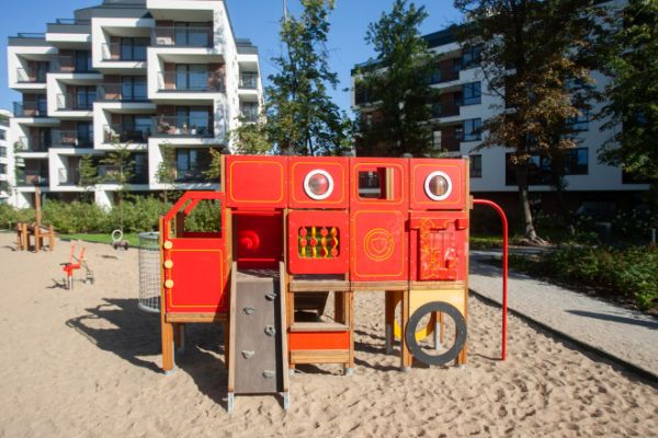 The Big Truck's platform, standing at a height of 90 cm, is a centerpiece of adventure. Here, children can unleash their imaginations, steering through fantastical landscapes as they role-play as truck drivers. The addition of a low climbing wall offers a fun challenge for little climbers, while the more adventurous can test their skills on the firefighter's pole, adding a dash of thrill to the play experience.