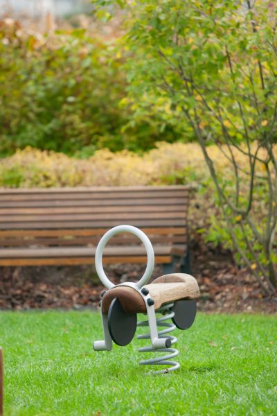 The Bike Rocking Spring Rider makes an excellent feature in public playgrounds or private outdoor spaces. Its natural Robinia wood construction blends effortlessly with the green backdrop, enhancing the play area's aesthetic appeal. Its durable construction and captivating design promise countless hours of fun for children, making it an investment in joy and growth. So, get ready to set the wheels of imagination, fun, and learning in motion with the Bike Rocking Spring Rider!