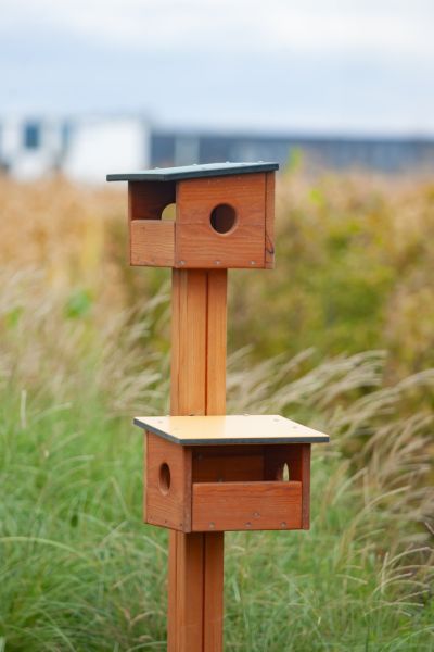 Measuring 46 cm in width, 32 cm in length, and standing at a comfortable height of 175 cm, the Bird Feeder blends seamlessly into the backdrop of your garden or playground while offering its unique educational charm. The robust and durable larch wood base material ensures longevity and resilience against weather elements. The high-density polyethylene (HDPE) components ensure safety, adding to the Bird Feeder's appeal as a great addition to any outdoor space.