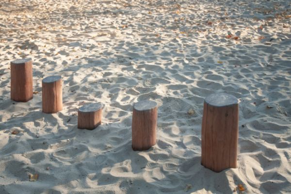 Each post in the Cape Code set varies in width and length, measuring between 20 to 25 cm, providing a visually appealing and varied landscape for children to explore. The posts stand at varying heights, ranging from a minimum of 25 cm to a maximum of 55 cm. This range in height not only adds to the visual interest but also offers varying levels of challenge for children as they navigate through them.