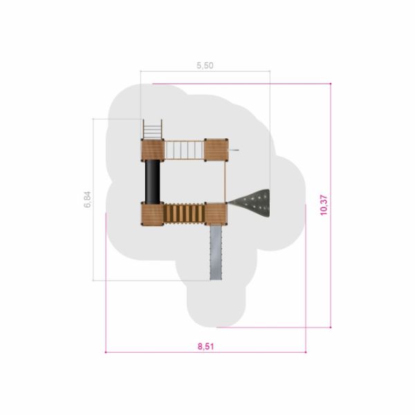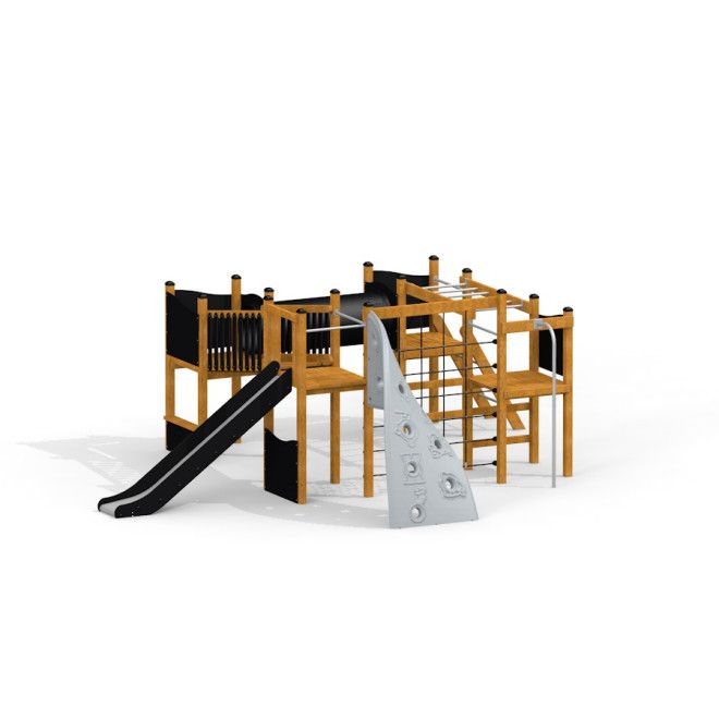 The Challenger Aztec Nature II is an engaging addition to the Classic Nature line, specially designed to create an exhilarating playground experience. This multi-functional structure stretches over a width of 553 cm and a length of 688 cm, with a height of 246 cm. Tailored for children aged 3 and above, it demands a safety zone of 1037x851 cm and is built to withstand a critical falling height of 235 cm.