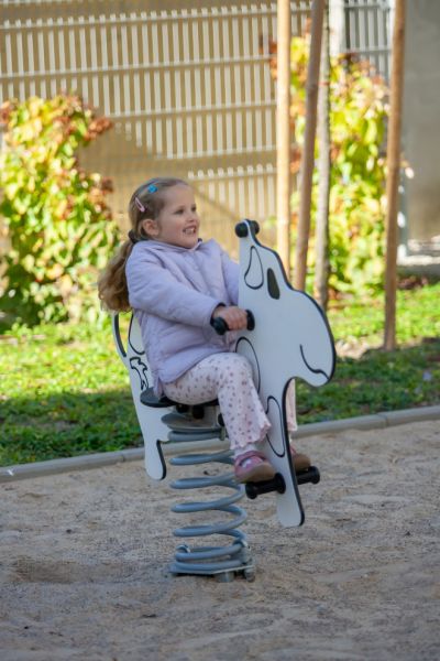 The Cow Rocking spring rider combines entertainment, safety, and durability in a beautifully designed package. It is not just a piece of playground equipment, but a delightful companion that will bring endless joy to children. With its attractive colors, secure design, and sturdy construction, it is a valuable addition to any play area, and a wonderful gift that children can enjoy day after day.