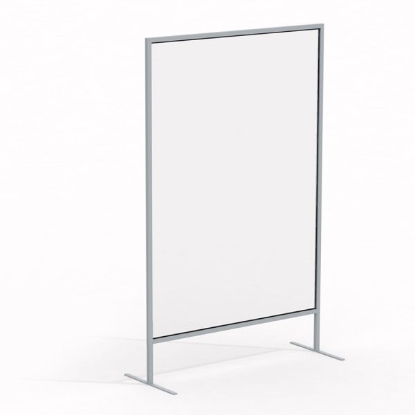 The screen is framed in a strong aluminum structure, which adds to its stability and durability. The aluminum frame not only reinforces the glass but also contributes to the sleek and modern design of the product, making it a suitable addition to any professional or public environment.
