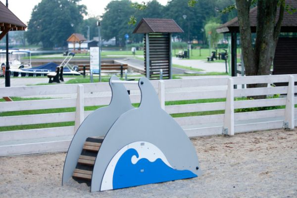 The Dolphin Slide’s unique feature is its playful design, resembling a friendly dolphin amid the waves. This captivating aesthetic not only draws children’s attention but also encourages imaginative play, making every slide down feel like a splash into the ocean.