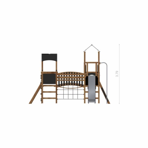 The Explorer Castle is a playground powerhouse filled with thrilling features. It includes an array of ladders, climbing nets, climbing walls, and various passages and platforms that motivate children to stay active. At the heart of this adventurous castle is its slide, a favorite feature that guarantees endless delight as children glide down in peals of laughter.