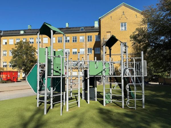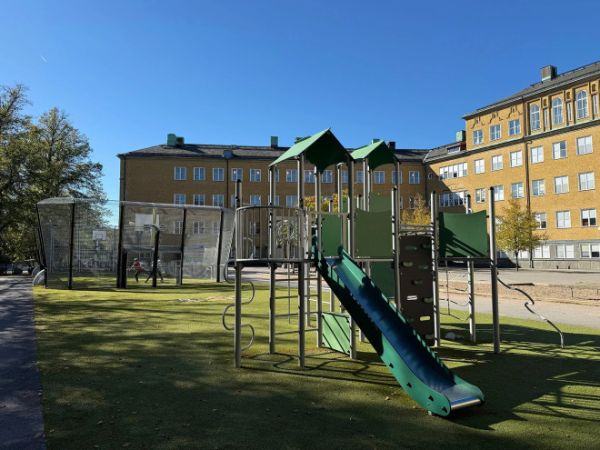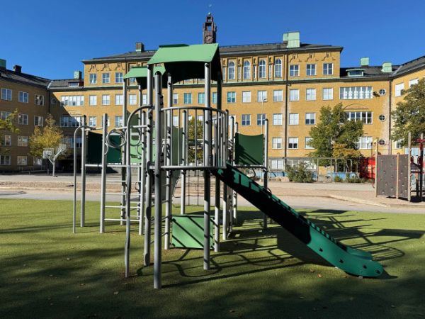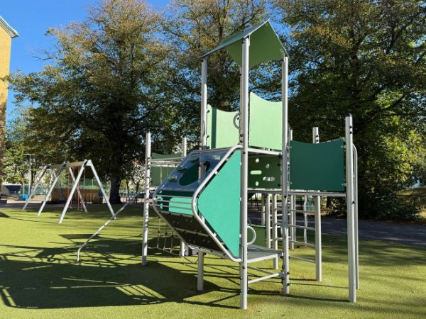 Safety is paramount in the design of the Fort with two towers and a slide. The structure meets the rigorous requirements of EN 1176-1:2017, ensuring compliance with European safety standards for playground equipment. The product's design focuses on stability and strength, with a foundation that's robust enough to resist tipping or shifting. The slide and platforms are strategically engineered to minimize risk, crafted to support active use while maintaining a secure play environment. These considerations make it an ideal choice for any community playground or recreational space.