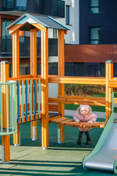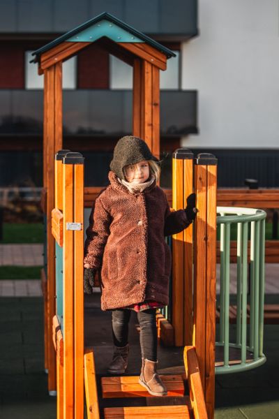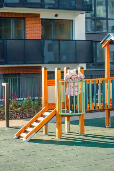 Warownia II doesn’t just offer fun, it promises security. Every component, from the larch wood to the powder coated steel, resonates with quality. The foundation comprises anti-slip waterproof plywood, PE/plastic, and steel plates enveloped in plastisol, forging a sturdy and resilient structure that can withstand years of energetic play. The platform, elevated at 90 cm, offers a vantage point for kids to view their kingdom below.