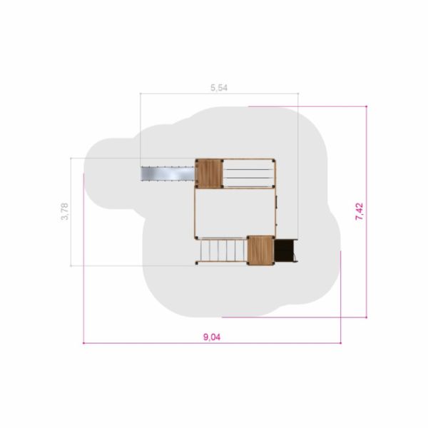 The Gorilla Nature play structure is an amalgamation of diverse play apparatuses, intricately designed to boost the psycho-motor skills, strength, and agility of children. Spanning 378 cm in width and 554 cm in length, with a height of 216 cm, this playground centerpiece is ideal for kids aged 3 and above.