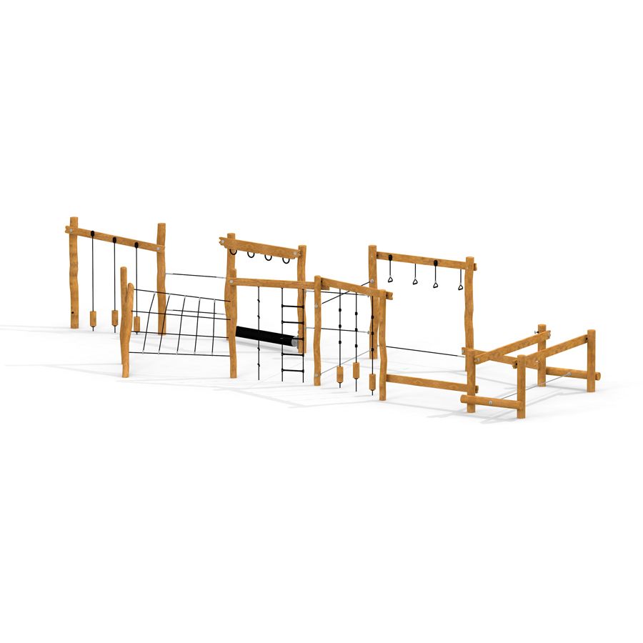 Constructed from durable Robinia wood, the Karakum is both robust and aesthetically pleasing, blending seamlessly into natural playground settings. The incorporation of stainless steel, soft PP-Polypropylene ropes, and HDPE elements in its construction adds to its durability and safety, while providing a variety of textures and challenges for children.