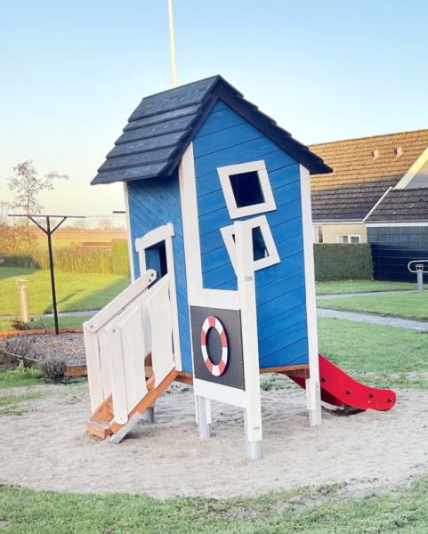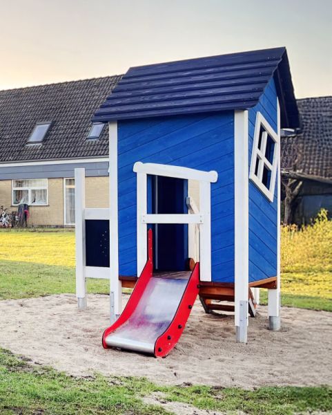 Boasting a generous width of 283 cm, a length of 246 cm, and an impressive height of 287 cm, Lena's playhouse offers ample room for children to play, explore, and grow. The perfectly sized slide adds an element of excitement, seamlessly blending active play with the serenity of an outdoor playhouse.
