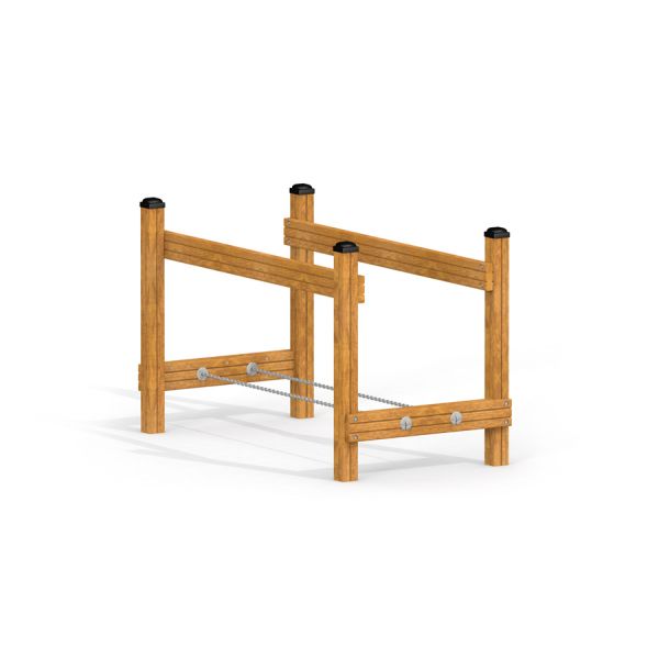 The Obstacle Course Chain Bridge from the Pioneer Line is a robust and dynamic wooden structure designed to captivate and challenge children from the age of 3 and upwards. This moving bridge is not just a source of immense fun but also an effective tool for developing balance and coordination skills.