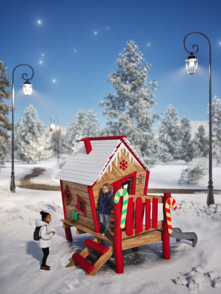 But Olle's Playhouse isn't just about safety and aesthetics. It's a playground for young minds. A stainless-steel slide, gentle enough for the tiniest thrill-seekers, spirals downwards, complemented by the two-tier wooden steps that usher children into their dreamy haven. The porch, adorned with a vibrant blue fence, serves as both a lookout and a meeting spot, while the sloping roof, complete with its quaint chimney, reinforces the fairy tale allure. The doors and windows, bearing curved frames, add another layer of charm, ensuring that every child who enters feels like the protagonist of their very own story.