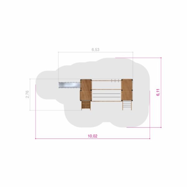 The Romping Center Nature from the Classic Nature line is an innovative playground masterpiece, masterfully designed to captivate children of various ages. With its dimensions of 276 cm in width, 654 cm in length, and a height of 216 cm, it offers a vast array of playful opportunities within a safe and engaging environment.