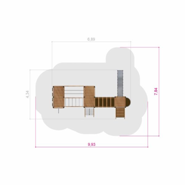 Spanning a safety zone of 803x993 cm, this playground structure provides ample space for a group of children to play, learn, and grow together. Romping Corner Nature is not just a play area; it's a sanctuary where childhood memories are made, a place where laughter echoes, and where every day is an adventure waiting to happen.