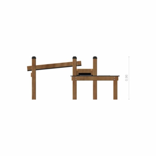 Craftsmanship shines through in every element of this play set. The primary structure is built from high-quality Larch wood, renowned for its resistance to decay and ability to withstand outdoor conditions. Complementing the wooden elements are details crafted from stainless steel and High-Density Polyethylene (HDPE), ensuring robustness and longevity.