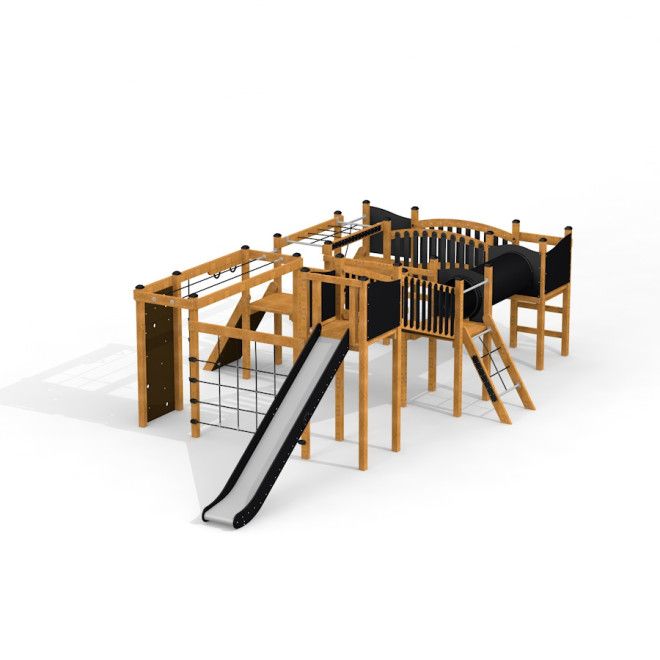 • Base material Larch wood, Stainless steel, Galvanized steel, Recycled HDPE, Reinforced ropes (PP-Polypropylene), Soft rope (PP-Polypropylene), Anti-slip waterproof Plywood, PE