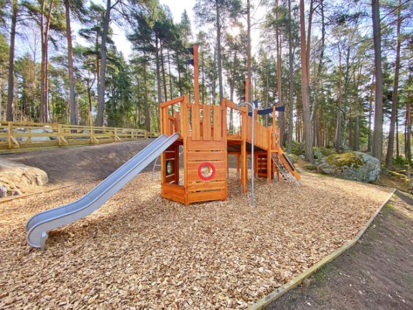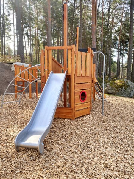 Crafted primarily from larch wood, the Ship Modern Nature is not only visually striking but also exceptionally durable and resilient to various weather conditions. The inclusion of stainless steel components adds to its robustness, ensuring this play structure withstands the energetic activities of its young adventurers.