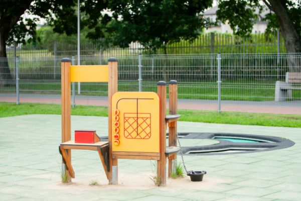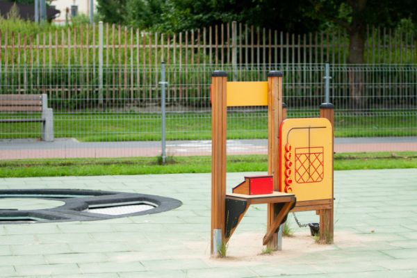 Constructed from durable larch wood, the Stall stands up to active play, ensuring the fun continues year after year. The robust design is accentuated with a high-pressure laminate (HPL) plate, adding to the unit's durability while delivering a vibrant aesthetic appeal. To further enhance the safety and longevity of the Stall, the construction also features an anti-slip, waterproof plywood and High-Density Polyethylene (HDPE). Stainless steel chains and rubber components are incorporated to provide stability and resilience, making this playset not only exciting but safe and reliable.
