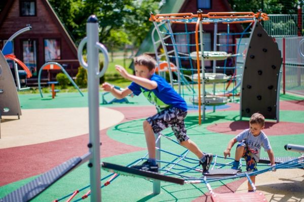 The Starfish features multiple components including a Surfboard, Rhombus, Rope Jumper, Climbing Wall, Footbridge, Balance Beam, and a Hidden Nook. This modular setup offers children a plethora of activities, enhancing their motor skills, balance, and agility. The surfboard and balance beam challenge their balancing skills, while the climbing wall and rope jumper develop their strength and coordination.