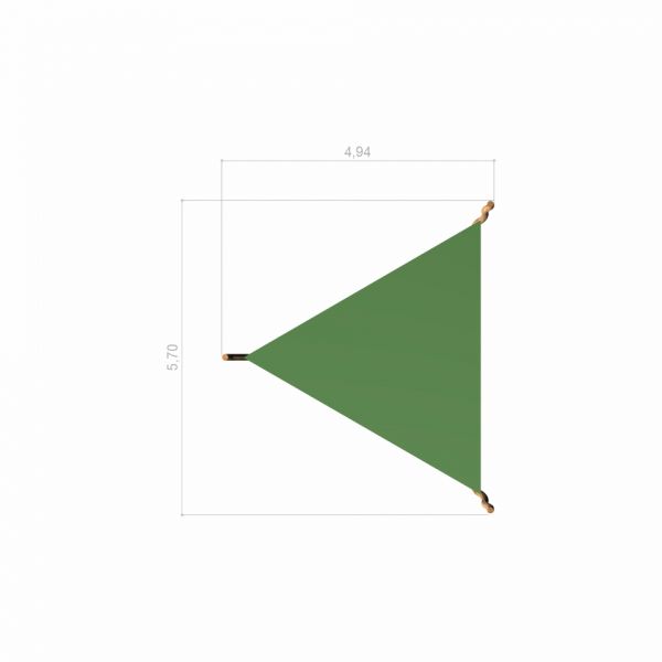 The Sun Shade Triangle 5x5x5 Nature (Robinia) stands out with its unique triangular design, measuring approximately 570 cm in width, 494 cm in length, and soaring up to 301 cm in height, providing ample shade and protection from the sun.