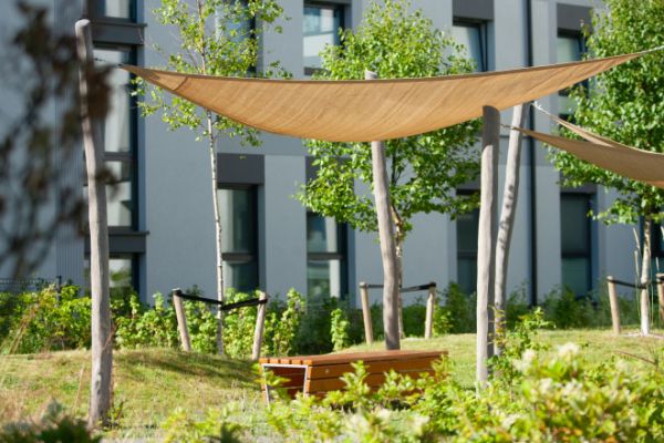 Transforming outdoor spaces, the Sun Shade Triangle offers effective protection against harsh sunlight, ensuring a cooler environment for children's play areas, seating zones, and other outdoor facilities. Its triangular shape, measuring approximately 484 cm in width, 558 cm in length, and 301 cm in height, is not only visually striking but also provides ample shade, safeguarding users from UV exposure and overheating.