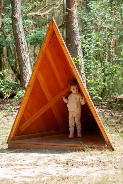 The Tipi Nature Wooden House is an enchanting play structure from the Nature line, perfectly suited for young explorers aged 1 and above. With its triangular, teepee-like design, this playhouse stands out as a unique and imaginative addition to any playground, garden, or backyard.