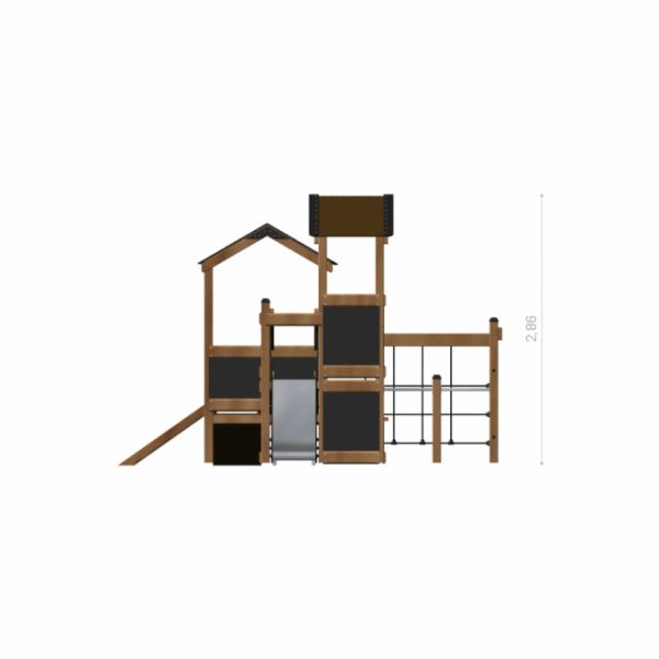 The Tower Nature isn't a mere playhouse; it’s a landscape of multiple activities. It boasts two shaded towers, a wooden trap, a ladder, a climbing net, a rock wall, and a slide. A bridge, acting as a corridor of laughter and stories, seamlessly connects the two towers. The platform heights have been thoughtfully designed at 55 cm and 90 cm, catering to different age groups and ensuring children always have a vantage point to look out from.