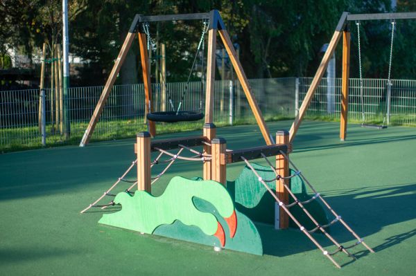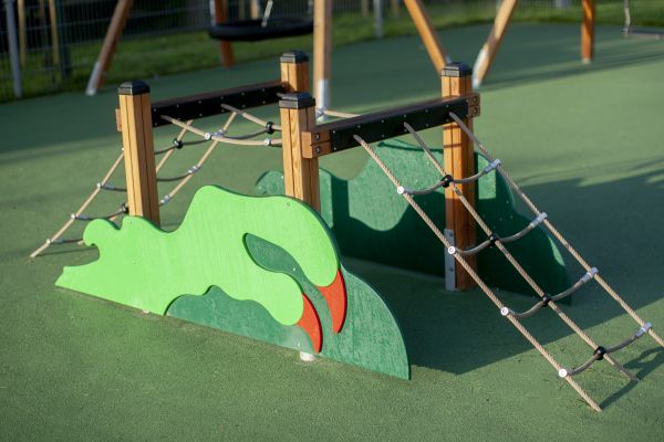 Embark on a mythical adventure with the Trapezoid with Dragon Claws from the Pioneer line, an imaginative playground structure designed to captivate and challenge children aged 3 and above. This unique play equipment, stretching 326 cm in width and 105 cm in length, stands at a height of 95 cm, creating a striking presence in any playground.