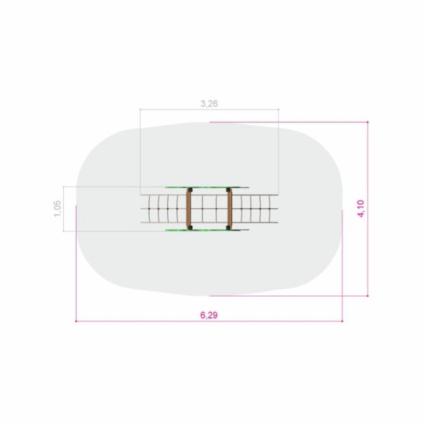 This playground feature has a critical falling height of 80 cm, necessitating a designated falling surface to ensure the utmost safety for its young adventurers. The recommended safety zone for this structure is 629x410 cm, allowing ample space for energetic play and movement around the equipment.