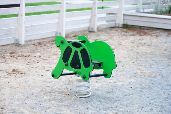 The core structure of the Turtle Rocking toy is built with high-quality, powder-coated steel. This sturdy base material gives the rocker its robustness and resilience, ensuring it withstands the test of time and the energetic play of children. The coating offers an extra layer of protection, making the toy resistant to weather conditions and mechanical damages. As a result, this vibrant play equipment will continue to entertain and delight children for many years to come.