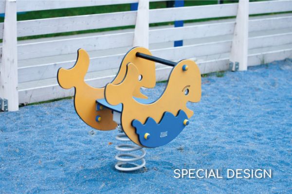 The Whale Rocking Spring Rider is constructed using materials of the highest safety standards and durability. The rider's spring is made of powder-coated steel, ensuring it can withstand repeated use and harsh weather conditions without losing its resilience or shine. The connecting elements are crafted from stainless steel, providing the necessary strength to support the enthusiastic movements of the little riders.