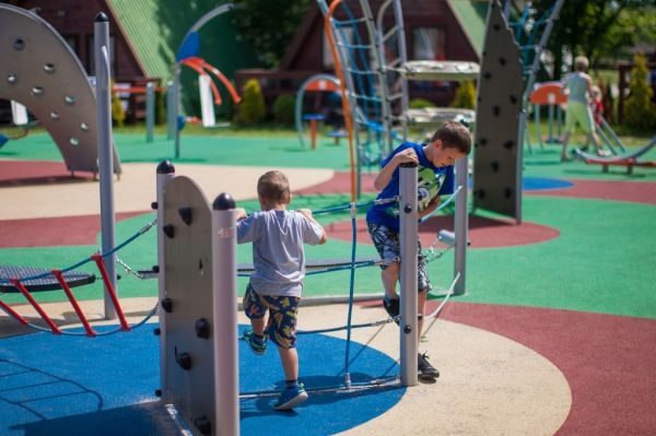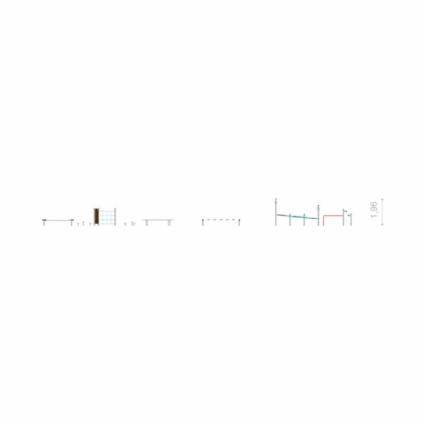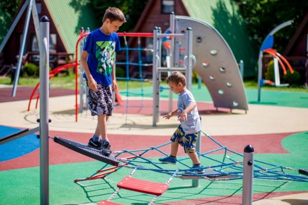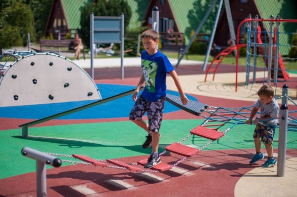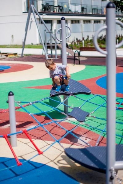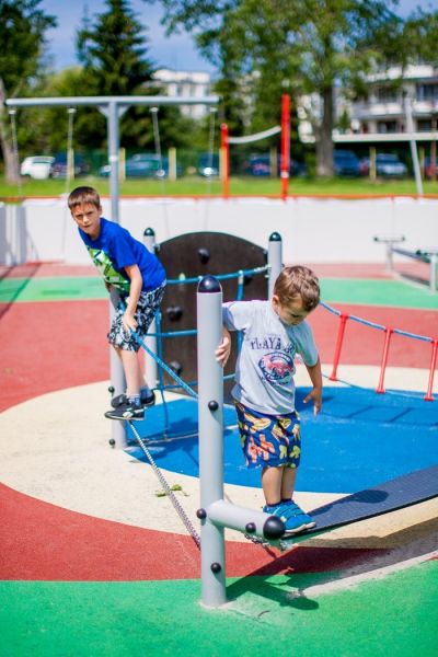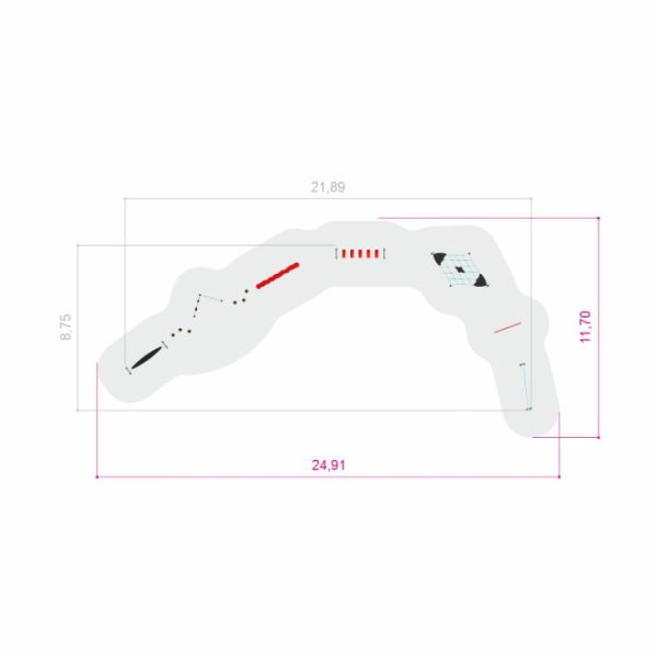 Spanning a substantial area with dimensions of 887 cm in width and 2189 cm in length, and reaching a height of up to 196 cm, the trail is an impressive addition to any urban playground, school yard, or preschool area. It is meticulously crafted with child safety in mind, featuring rounded edges and constructed from durable, high-quality materials.