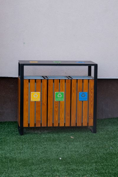 Designed for functionality across a variety of spaces, the Wooden recycling bin can be strategically placed in parks, alongside sports facilities, and in community recreational areas. Its practical design facilitates convenient sorting of recyclables, encouraging public participation in sustainable practices. While it serves as an effective recycling solution, its understated design complements the aesthetic of outdoor spaces without disrupting the natural landscape.